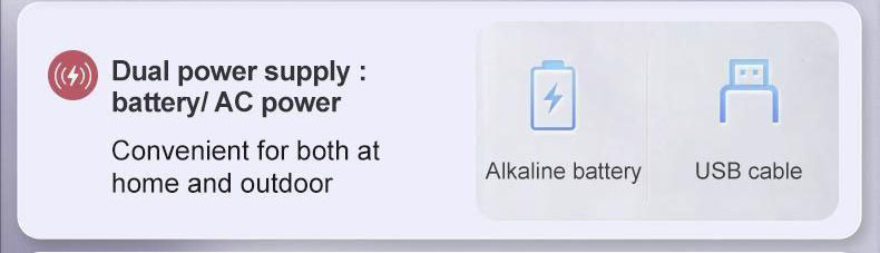 3. Dual power supply:1.5V*2AAA Size Alkaline battery or d.c.5V/1A
