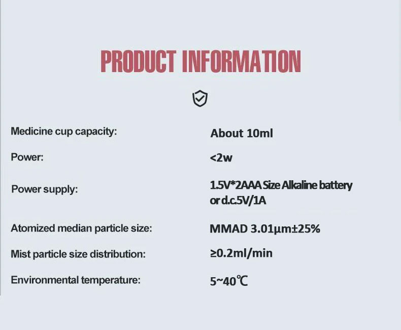 ●The nebulized medications suitable for this product include: Albuterol sulfate; Ipratropium bromide; Albuterol sulfate. Cromolyn sodium