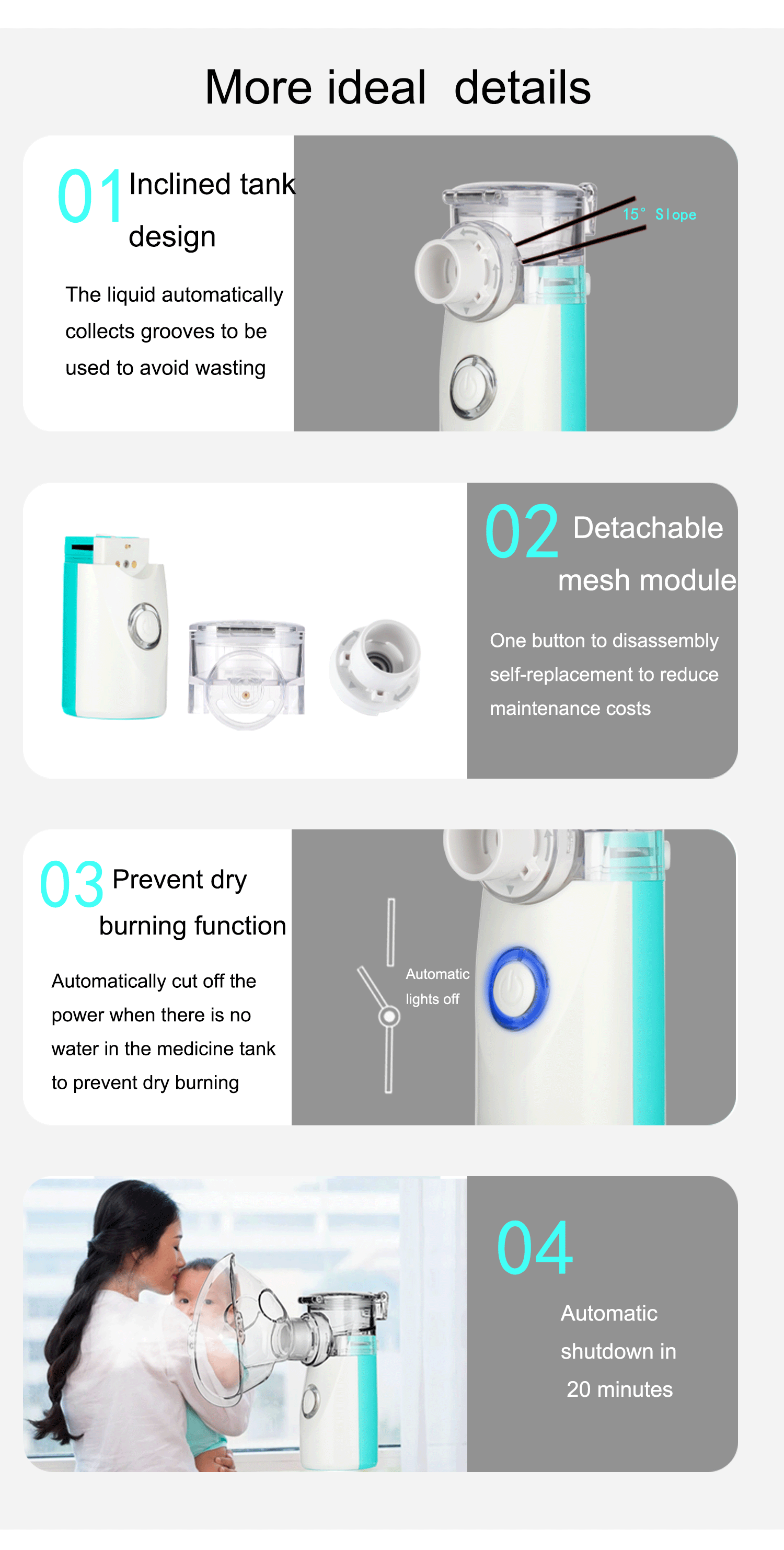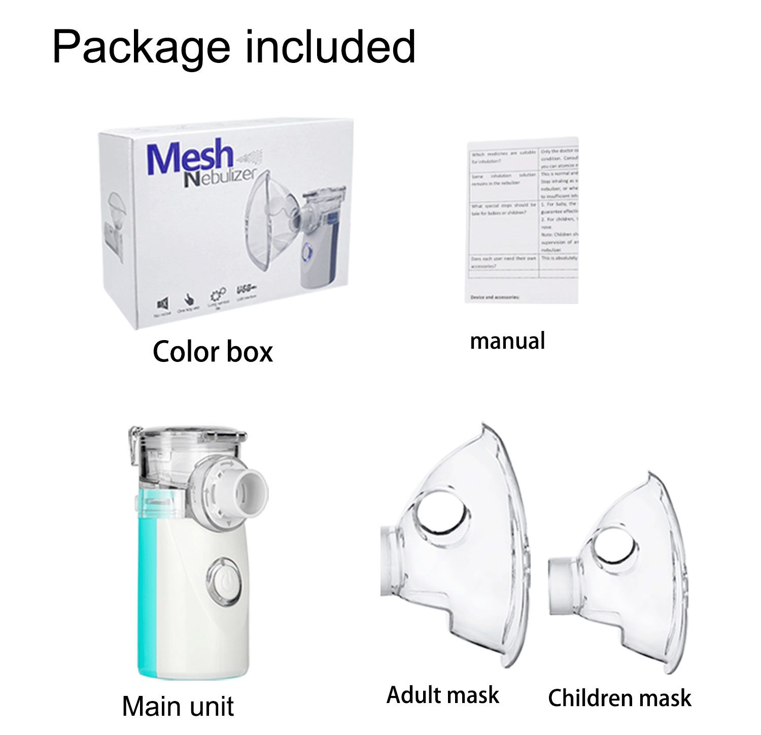 ●The nebulized medications suitable for this product include: Albuterol sulfate; Ipratropium bromide; Albuterol sulfate. Cromolyn sodium