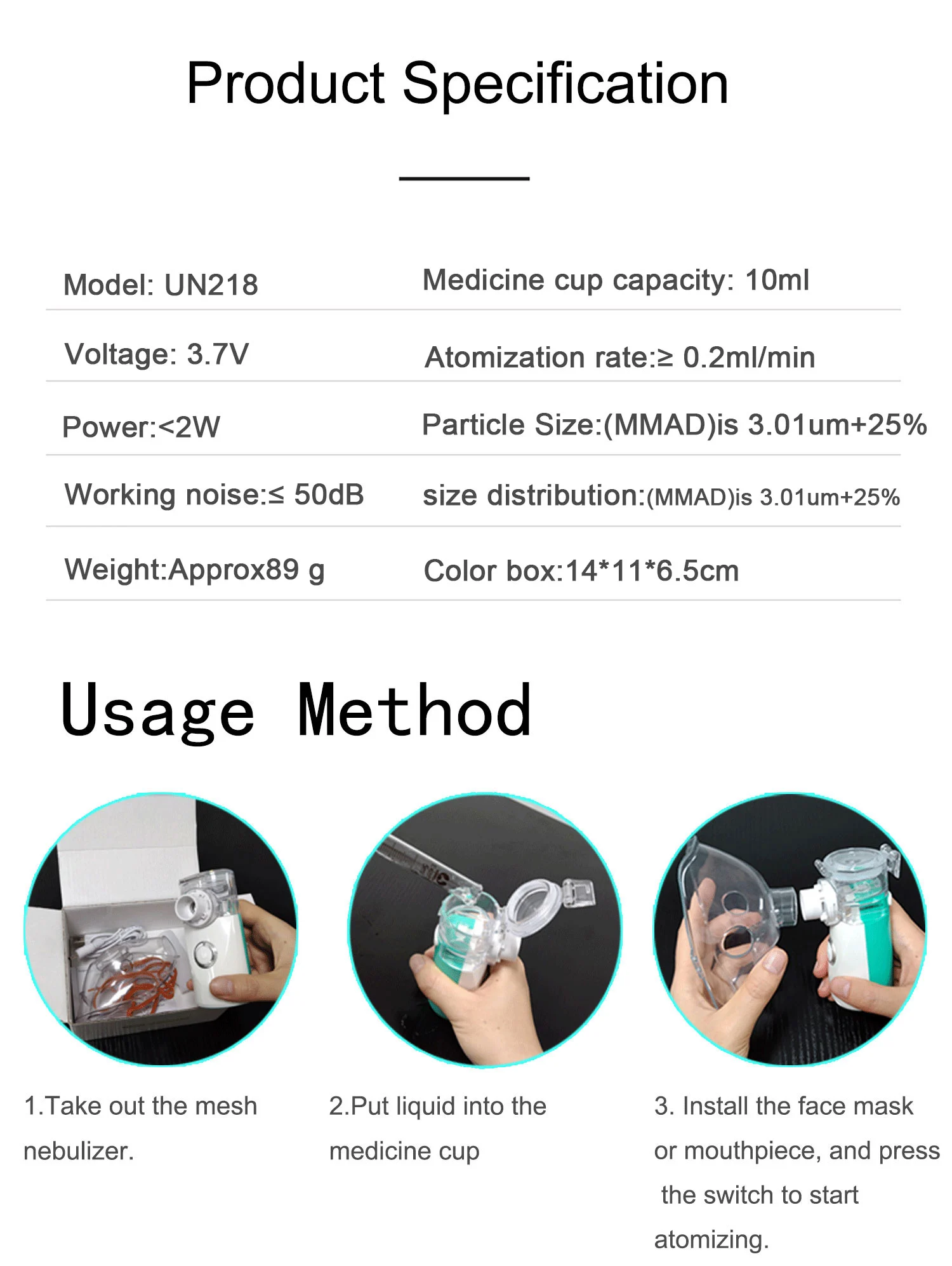 ●This product is not suitable for pentamidine medication. Do not use this device on individuals with bruises, burns, inflammation, rashes, wounds, or allergies. It is not suitable for newborns and infants.